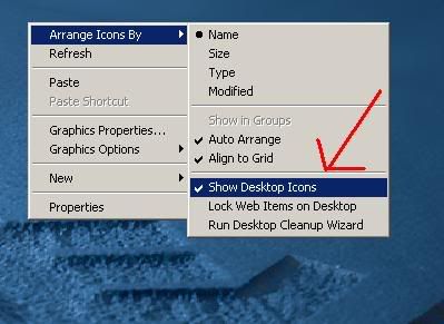 Shortcuts on your desktop are not necessary and they increase your computer startup time. There are other ways to access applications, such as through the Start Menu. To hide desktop shortcuts, right-click on your desktop, go to "Arrange Icons by" and uncheck "Show Desktop Icons" by clicking on it.
