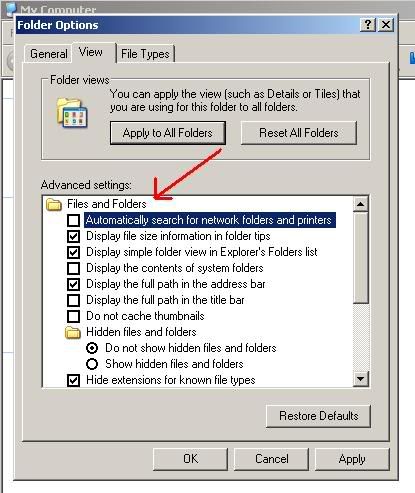 If the My Computer Window loads slowly, go to Start, My Computer, choose View, then uncheck ‘Automatically search for network folders and printers"