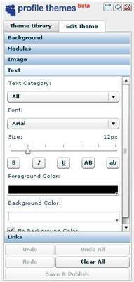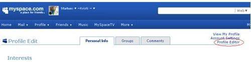 To do the Profile editor you need to be in IE - this will not work in Firefox (stupid myspace I know - eww IE).