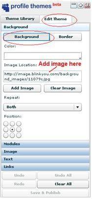 First you need to know what your background image is on your profile. Now you can do this two ways. You can view your background code or you can find it by your view source on your profile. So what are you looking for? Well look in your code for a image URL like this one: