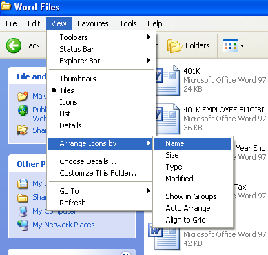 Click the Name column to sort items by name, press & hold down the CTRL key, & then quit Windows Explorer by clicking Close in the upper-right corner of the screen.