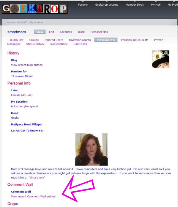 You can also see the different GeekDropper's walls by the hot links on the right hand side. Just go to the "Members Stuff" menu, and the side tab will show you a few links, and one is a live