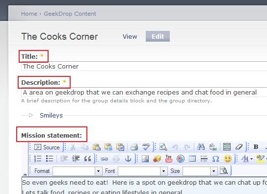 Now once you start a group you will have to find a name for the group, a brief description of the group and then the groups mission statement: