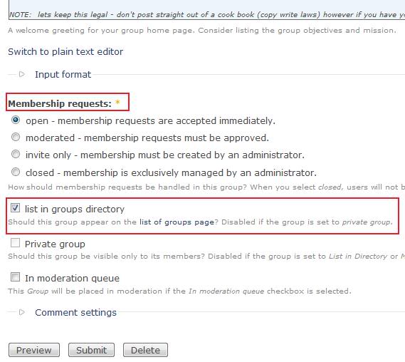 once you do that then you will need to decide what type of group you want. Do you want your groups membership to be public or private invite only or something in between: