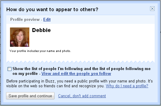 GO to your Buzz profile and click on your name. Once there you will see this - click on "Google Profile"