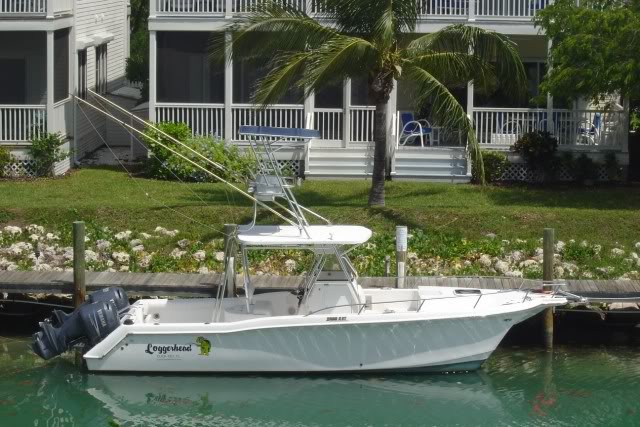 I grew up on the water and I love to fish but only deep sea fishing (I'm not a lake fishing girl) and yes I love going for big game. We have gotten some sail fish in the past and my dad got a marlin. The biggest fish I got was a 45lb bull dolphin (no not flipper that would be mahi mahi) and that about killed me. Our one boat has a fighting chair where your strapped in so that you don't kill yourself fighting it. My family has a larger 39' boat here that I'm not sure if were going to take out this trip. We towed up our smaller boat to go exploring the islands here. Its to hard to use the big boat for island hopping due to all the sand bars. Our smaller one is a 16' boat and lots of fun. I don't have a pic of the smaller one on this laptop but here is the larger boat
