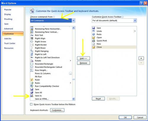 im still working my way around MS 2007, i have noticed that there is no "save as" button on the menu bar and it's getting old having to hit, office button, then save as, is there a way to add the save as button to the menu bar?