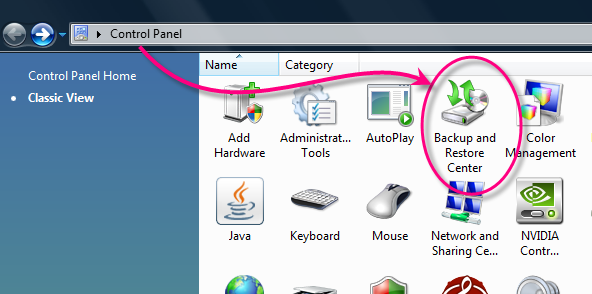 Now if your wanting to back up to a previous date then simply go to Start > Control Panel > Back Up And Restore Center Once there you can restore to a previous date