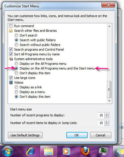 Once your there you need to scroll down (its towards the bottom) to "Systems administrative tools" and click the button that says "Display on the All Programs menu and the Start Menu"