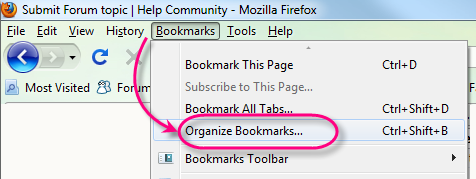 Click on "Bookmarks" in the uper left hand corner, then click on "Organize Bookmarks"