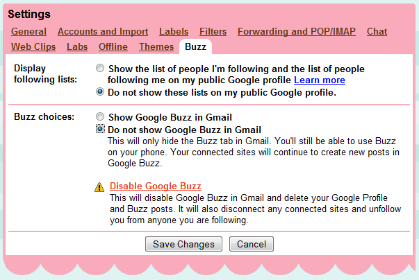 How many have noticed this but at the bottom of you gmail you can turn off gmail chat and google Buzz. So if you hate it then simply turn it off now: