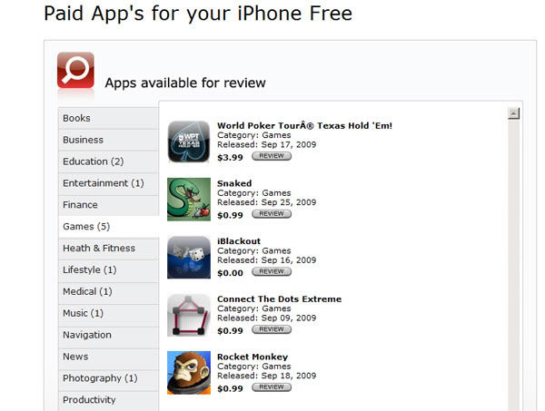 2. Browse and select a premium App to test, You need to pay for the application up-front but you will get the money back in your Paypal account once your review gets accepted and published on the iTunes store.