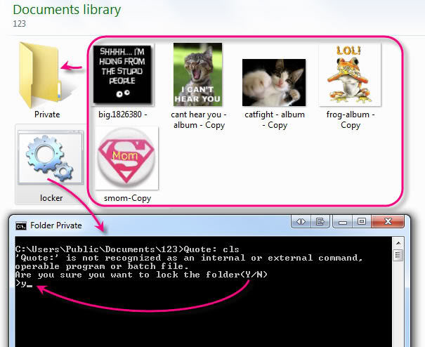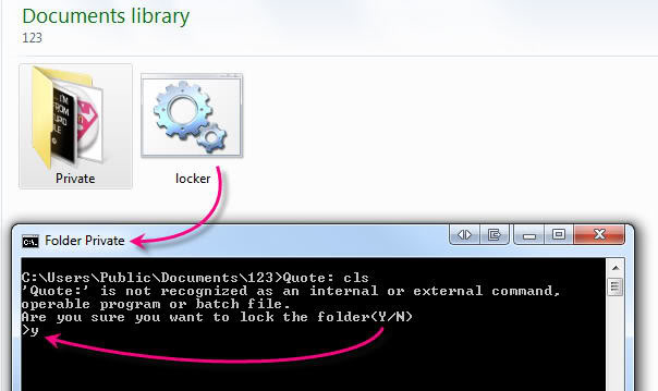 4. Once you move your files into the "private" folder (except for the locker file - leave that out) then type in a Y that you would like to lock the folder