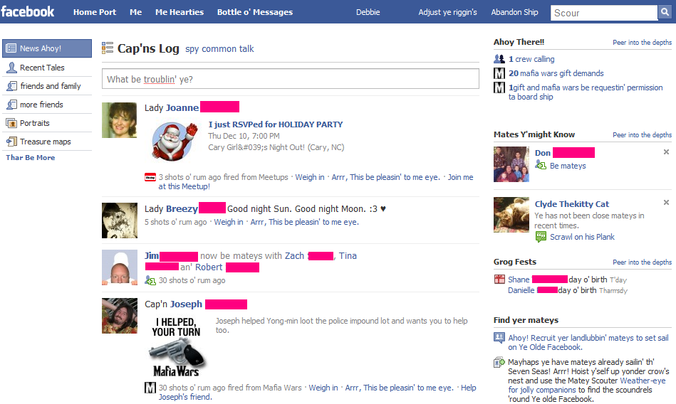 Well if you find yourself board one day its always fun to Pirate Facebook. You know a little Yo Ho Ho to make you smile.
