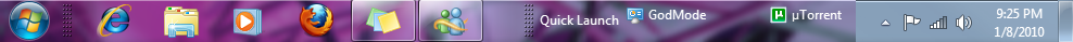 After you do that your task bar will look something like this (above). To add items to your Quick launch simply drag them to the taskbar.