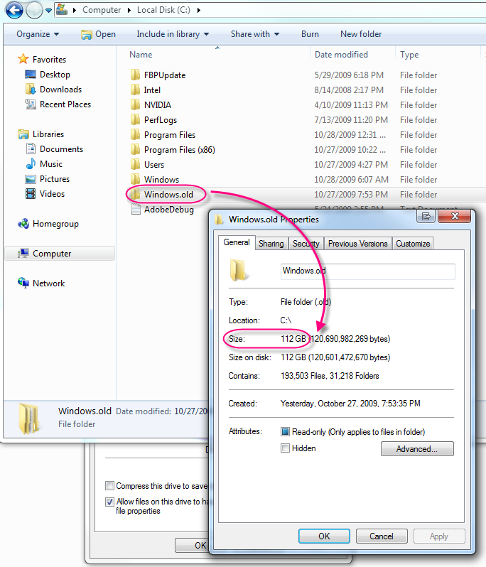 NOTE: Now when you delete that folder you will get popups asking is you are sure - YES They will also say that they contain important files. Well those important files are to run Vista and since you are now Windows 7 it is safe to remove them.