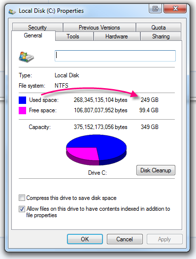 So you installed Windows 7 and you noticed that it took up a ton of room and now your left with little hard drive room. Well don't panic it really didn't. When you did your custom install what Windows 7