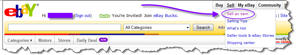 1. You click on the "sell" then the "sell an item" at the top of your page.