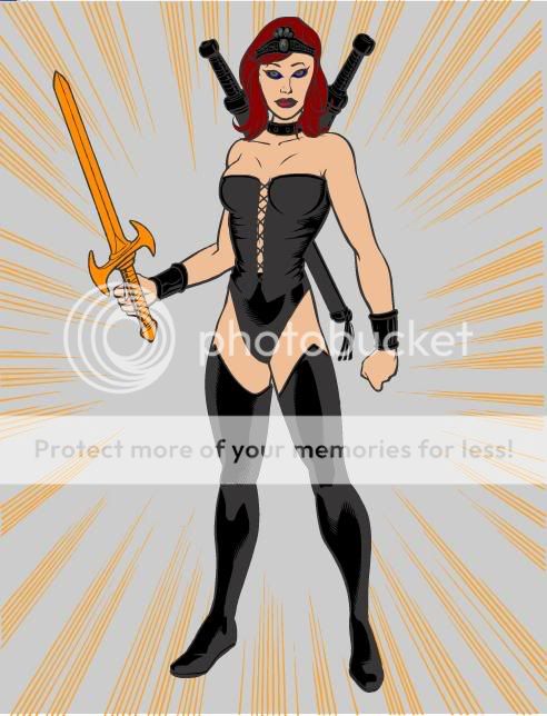 She reminds me a little of Zena Warrior Princess..*lol*...Well my coworker said mine looked like a freaky dominatrix superhero.