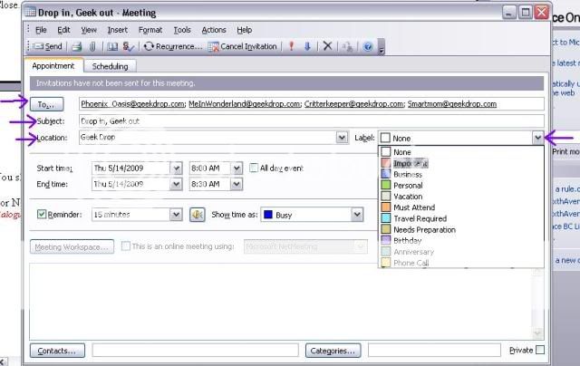 Click on the drop down menu of "Label.†Choose the label that describes the appointment.