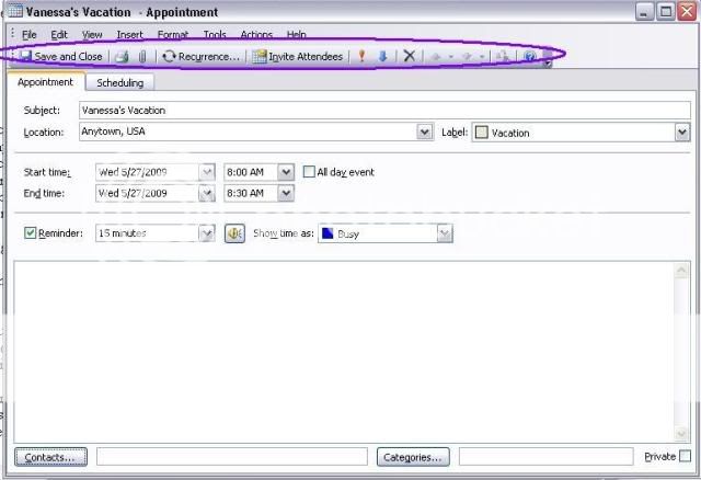 -Save and Close (Saves the appointment and closes the dialogue box)