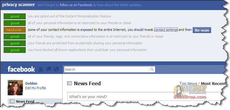So it did see that I have it marked its ok for someone to send me a facebook message and to add me as a friend and I'm ok with that. Everything else was fine. The scan took all of about 2 min to do.