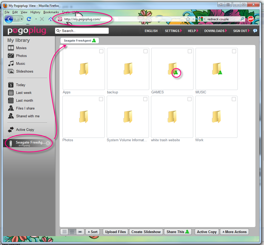 and download it and I have it. Say I want to share a file with a friend, well I can do that too. See my PogoPlug