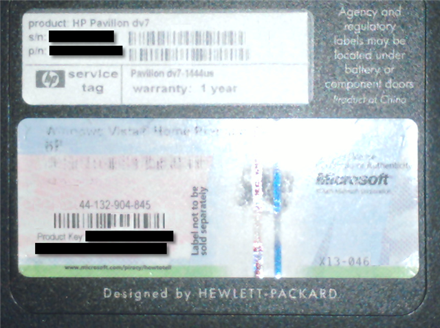 All of the numbers on the key were long gone and worn off. This is seriously not good. He was lucky that I had a extra key from when I upgraded my laptop to windows7 so I used that. However I did learn a lesson and from there I went and took pictures of all my laptops (we have 4 total) keys on the back of them. I was really surprised on how worn all the keys were but at least they were readable. If you can't photograph them then I would recommend writing them down. I took pictures of all of mine: