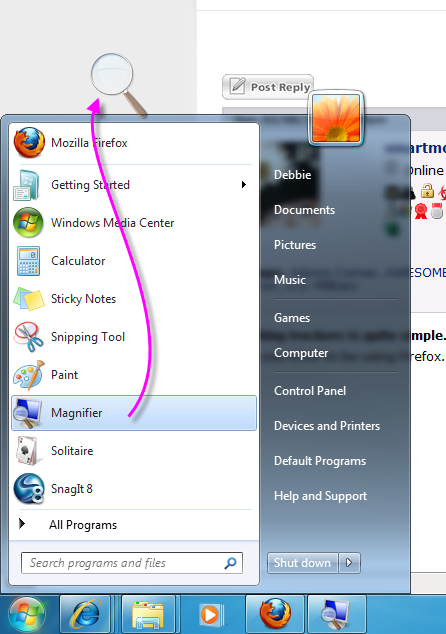 Click on the middle of the glass and you get a mini tool bar that lets you pic what % you want to magnify it at. Here are examples below. I did not change the picture size they are exactly how I see it: