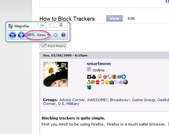 Magnifier: Now, that little magnifier I have circled above, well this is just plain awesome. You know when you go to a site and it lets you zoom around on pictures? Well this is the same basic concept!