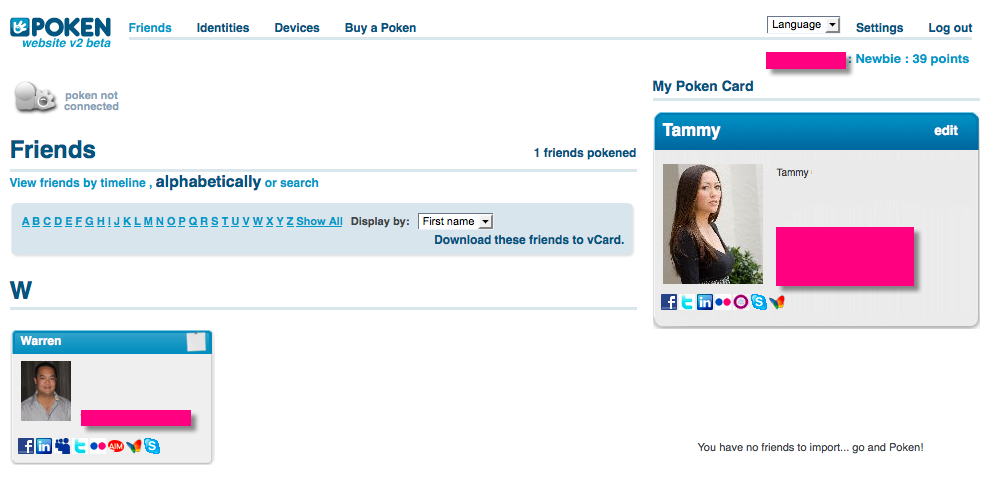 Here are the different sites you can show on your poken profile. I guess pokens are a cross between a electronic toy and a business card. Now can you set up a poken profile if you don't have a poken? Nope (I checked) so unless all your friends have pokens your pretty much stuck with a cute electronic toy. Now if you do get a poken this is what the profiles look like