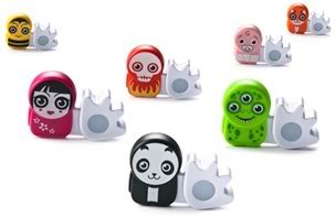 So notice they have one big white hand? Well the hand pulls out to expose a USB plug. You plug it into your computer and you load your information in it, including your social sites. Now when you meet up with friend instead of exchanging business cards or notes with each others information all you have to do is whip out your poken and well poken each other (providing they have a poken too). To poken each other they simply give each other a high four (only four fingers).