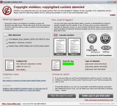 "A new type of Malware is riding the wave of file-sharing pre-settlement letters by infecting BitTorrent users’ machines and then demanding payments in order to make imaginary lawsuits go away. ICPP Foundation try to give the impression they are RIAA and MPAA affiliated but the whole thing is a scam to extort cash and obtain credit card details.