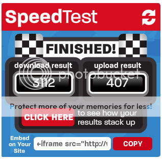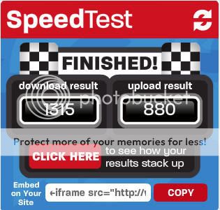 So once you test your speed post it so we can all see. Let us also know if you are on DSL - High speed Cable or what your connection is. Feel free to post what state you are in (only if you want).