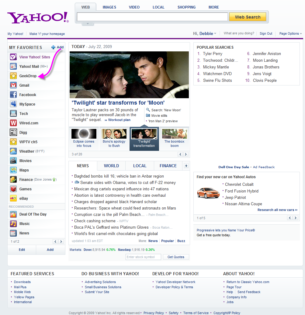 I'm really digging the new look. I like that you can add your own favorites and you can see I added geekdrop to mine. My home page is yahoo and it has been for years. I find the new look much more pleasing to the eye and not so cluttered looking. So if your a Yahoo person you might want to check it out.