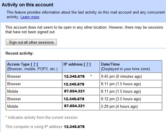 If you have a gmail did you know that you can see who is looking on your gmail. You can access the last 5 IP's that logged into that account. If you look at the very bottom of your gmail you will see this: