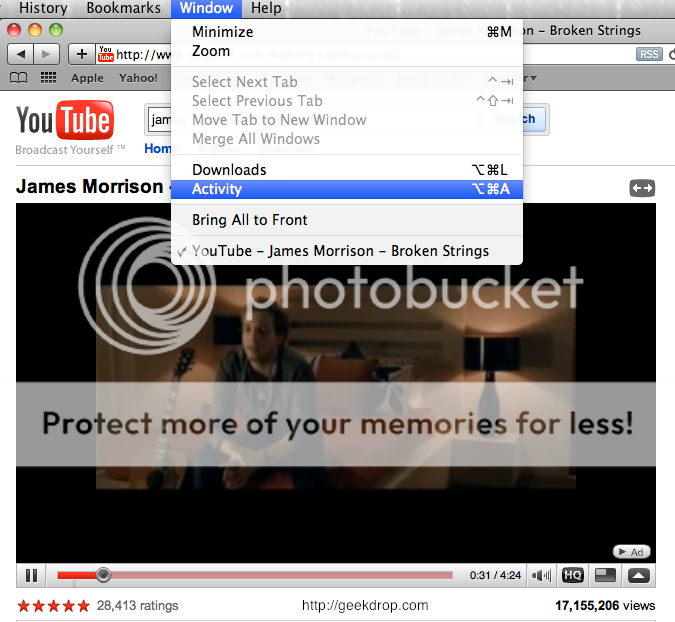 When you find the video you want to download go to your Safari Tool Bar at the top find Window then Activity.