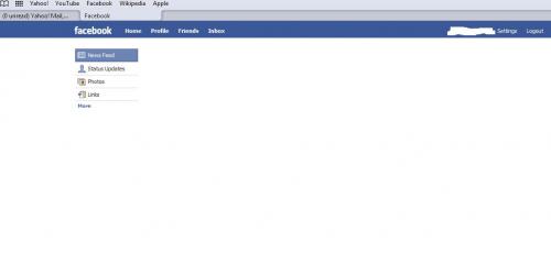 So son o' mine is having issues with getting onto Facebook the last couple of days. When he logs in, this is all he can see, and it doesn't matter where he presses on the page, nothing happens. He has tried in Safari, and FF and no luck. I can login to mine in both and have no issues at all. Anyone have any ideas?